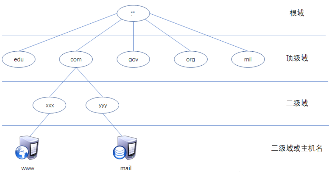 注2: 每个域名的最后面有一个点号“.”表示根域名,实际使用的时候为了方便省略掉。